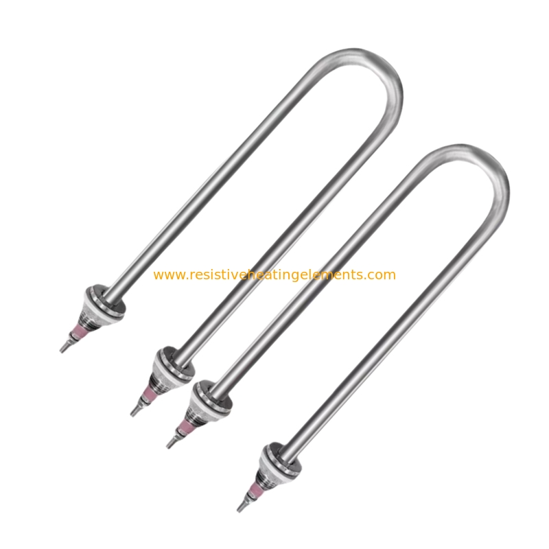 A single U-shaped heating tube is an electric heating element that converts electrical energy into heat. It is constructed by placing a heat-resistant heating alloy wire (such as nickel-chromium alloy) within a metal tube (such as stainless steel), filling the interstices with crystalline magnesium oxide powder, and then shrinking the tube into a U-shape or other desired shape. This type of heating tube features a simple structure, ease of use, safety, reliability, low cost, and pollution-free operation. It is widely used in various applications for heating liquids (such as water, oil, and acid-base solutions) and solids (such as molds and ovens).